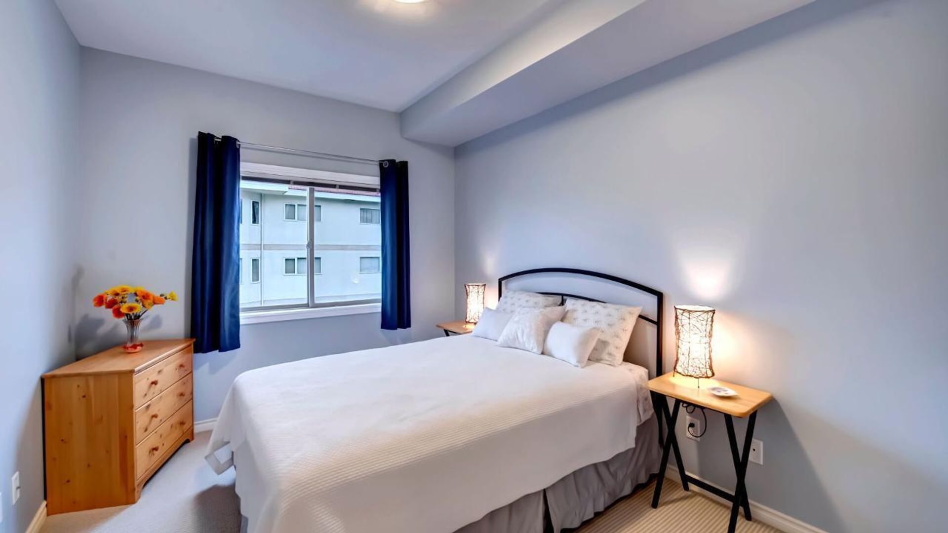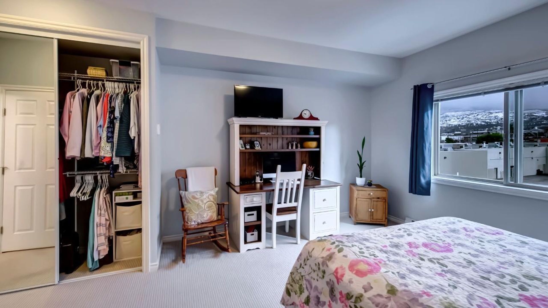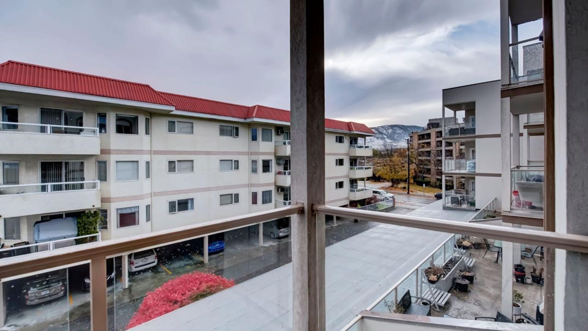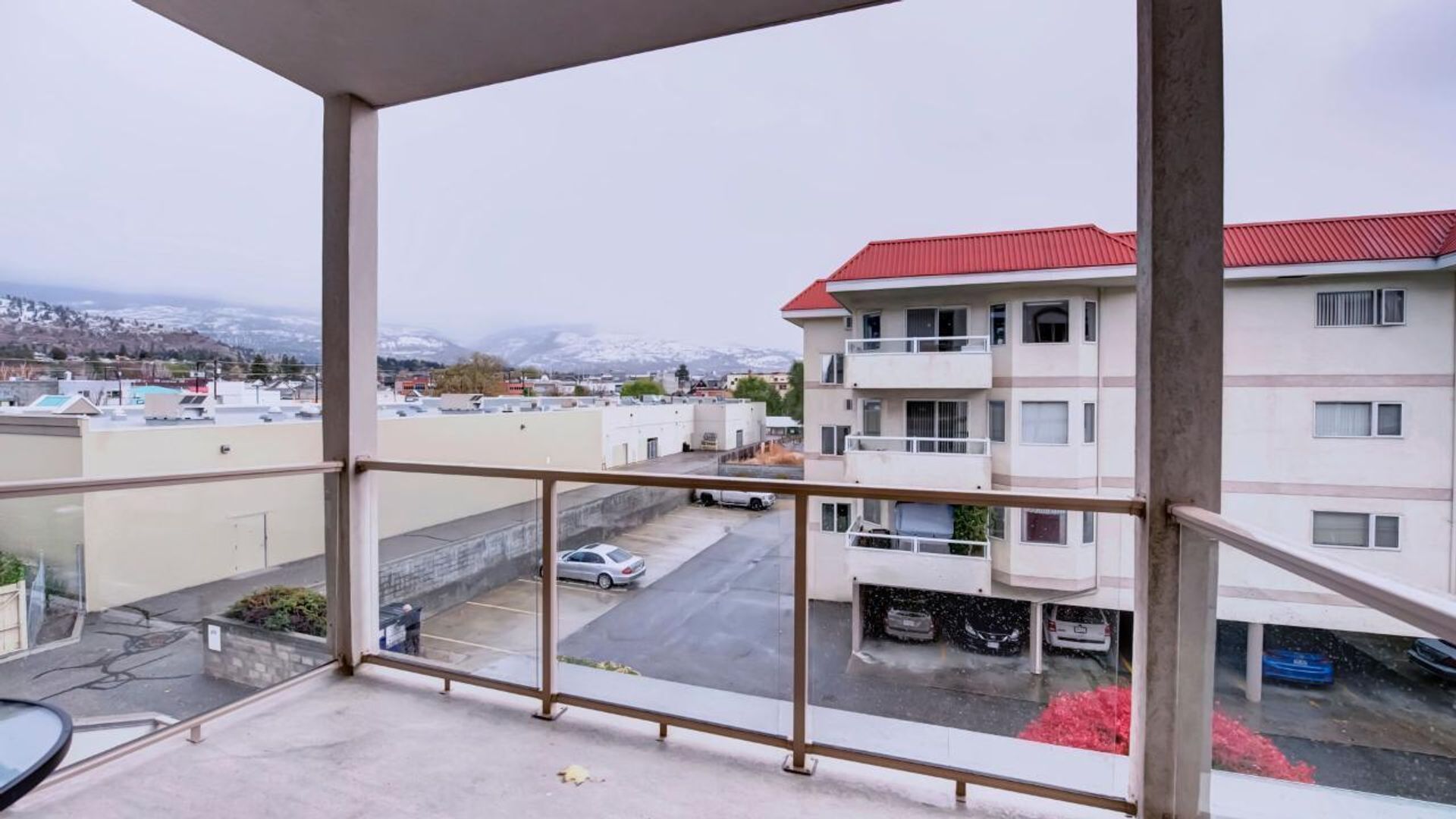 Welcome the The Stratford, Penticton\'s centrally located secure living. Only steps to numerous restaurants, breweries, a winery and Penticton\'s shopping district, this well thought out 2 bed, 2 bath home is on the corner third floor with a comfortable south facing deck for plenty of daily sunshine all winter long. The 2 separate bedrooms are at opposite ends of this home for privacy. The master bedroom includes a good sized closet and 4 piece ensuite. Included in this unit is a laundry room with stacking laundry/dryer and additional pantry storage. Upgraded paint and carpeting round out this exceptionally clean and well maintained home. Gated secure parking, complex video camera system and secure building entrance make for a safe environment. All measurements are from floor plan. Contact your agent for a showing today. (id:14735)