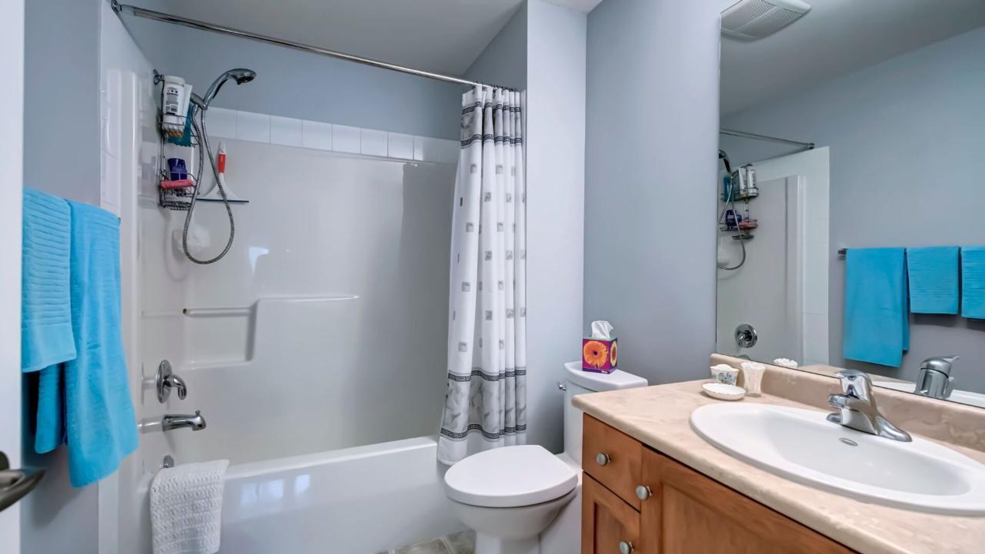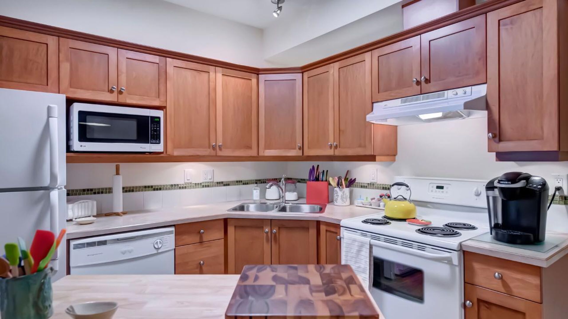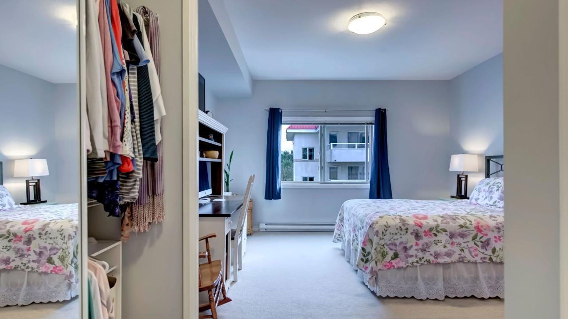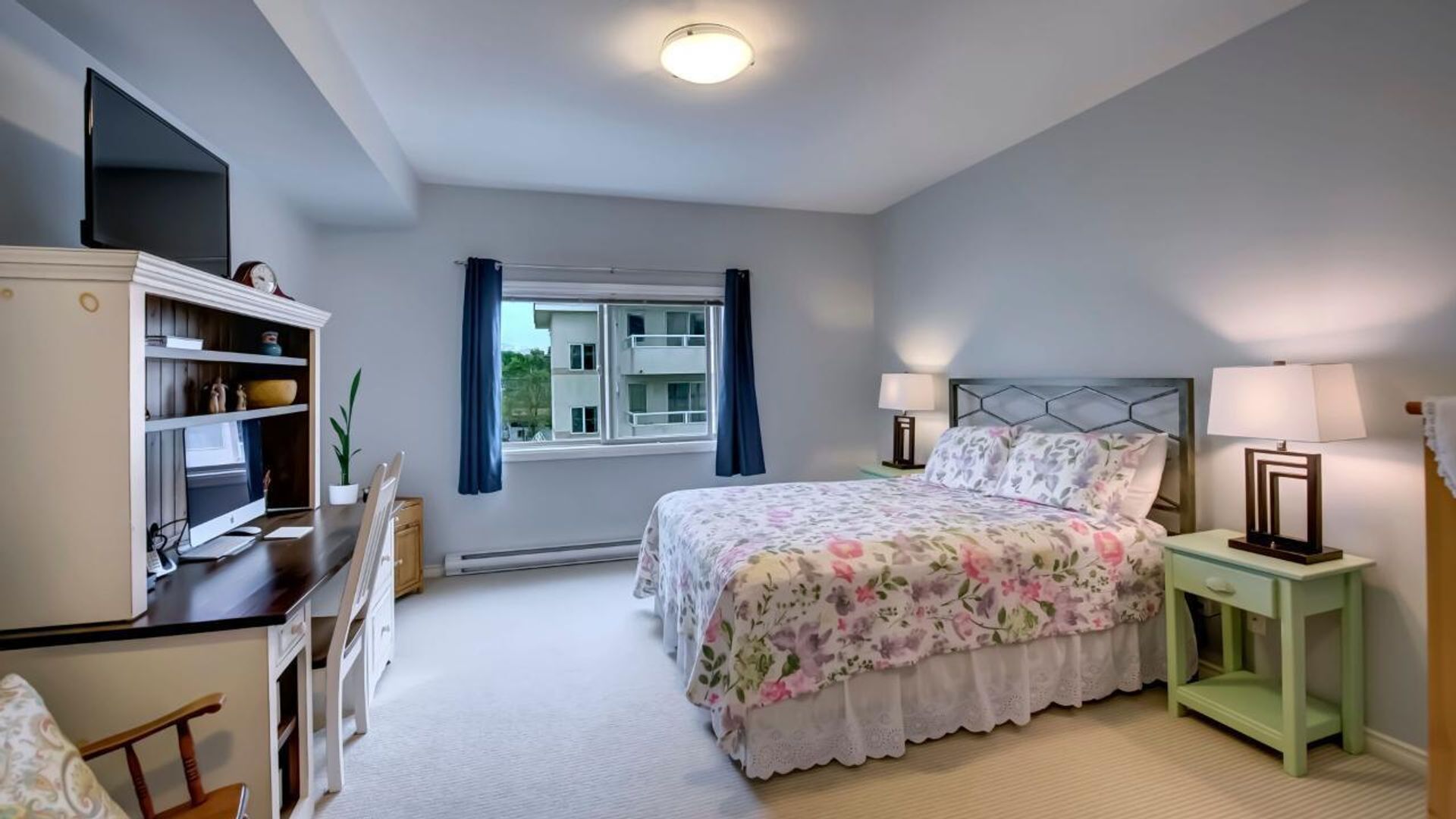 Welcome the The Stratford, Penticton\'s centrally located secure living. Only steps to numerous restaurants, breweries, a winery and Penticton\'s shopping district, this well thought out 2 bed, 2 bath home is on the corner third floor with a comfortable south facing deck for plenty of daily sunshine all winter long. The 2 separate bedrooms are at opposite ends of this home for privacy. The master bedroom includes a good sized closet and 4 piece ensuite. Included in this unit is a laundry room with stacking laundry/dryer and additional pantry storage. Upgraded paint and carpeting round out this exceptionally clean and well maintained home. Gated secure parking, complex video camera system and secure building entrance make for a safe environment. All measurements are from floor plan. Contact your agent for a showing today. (id:14735)