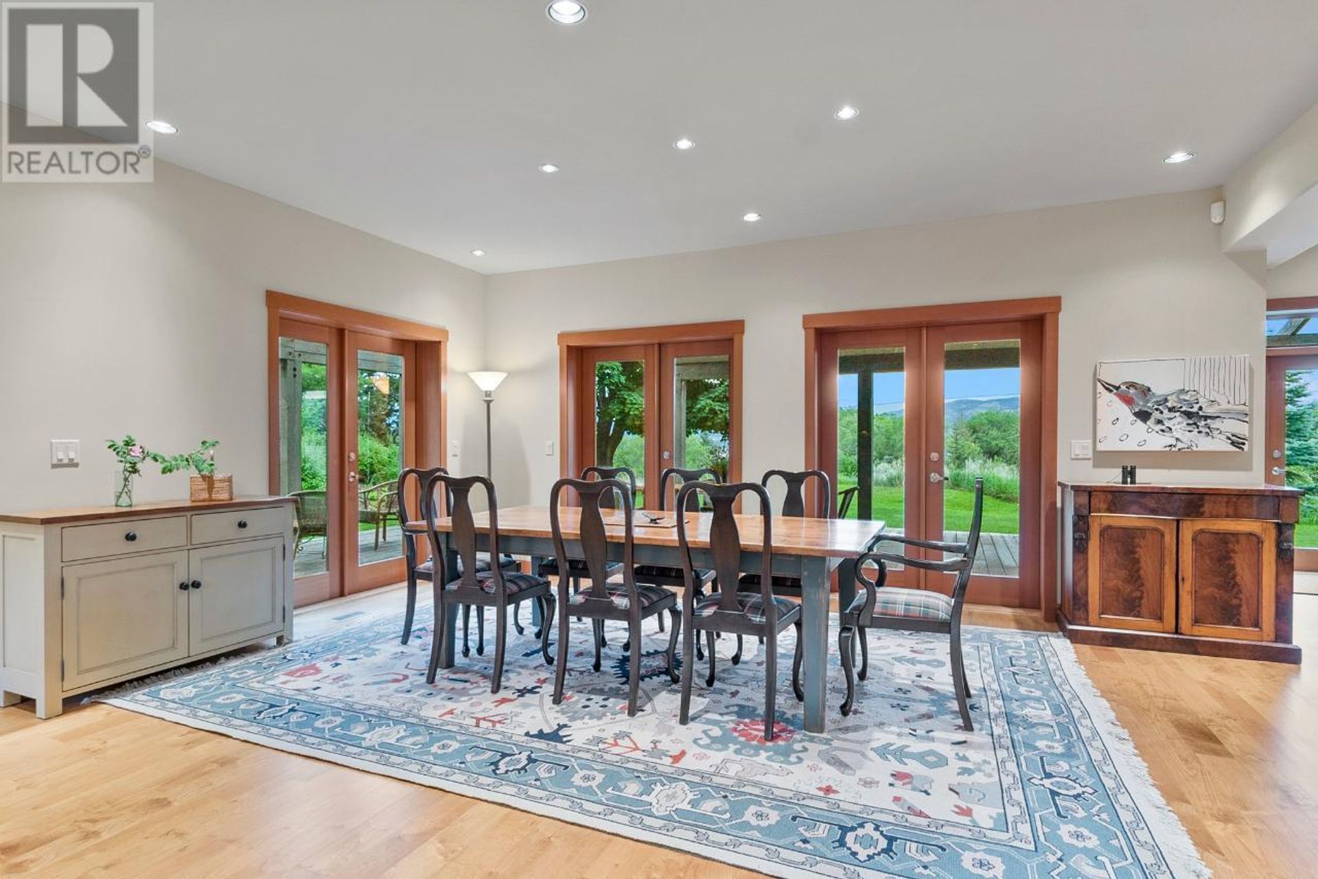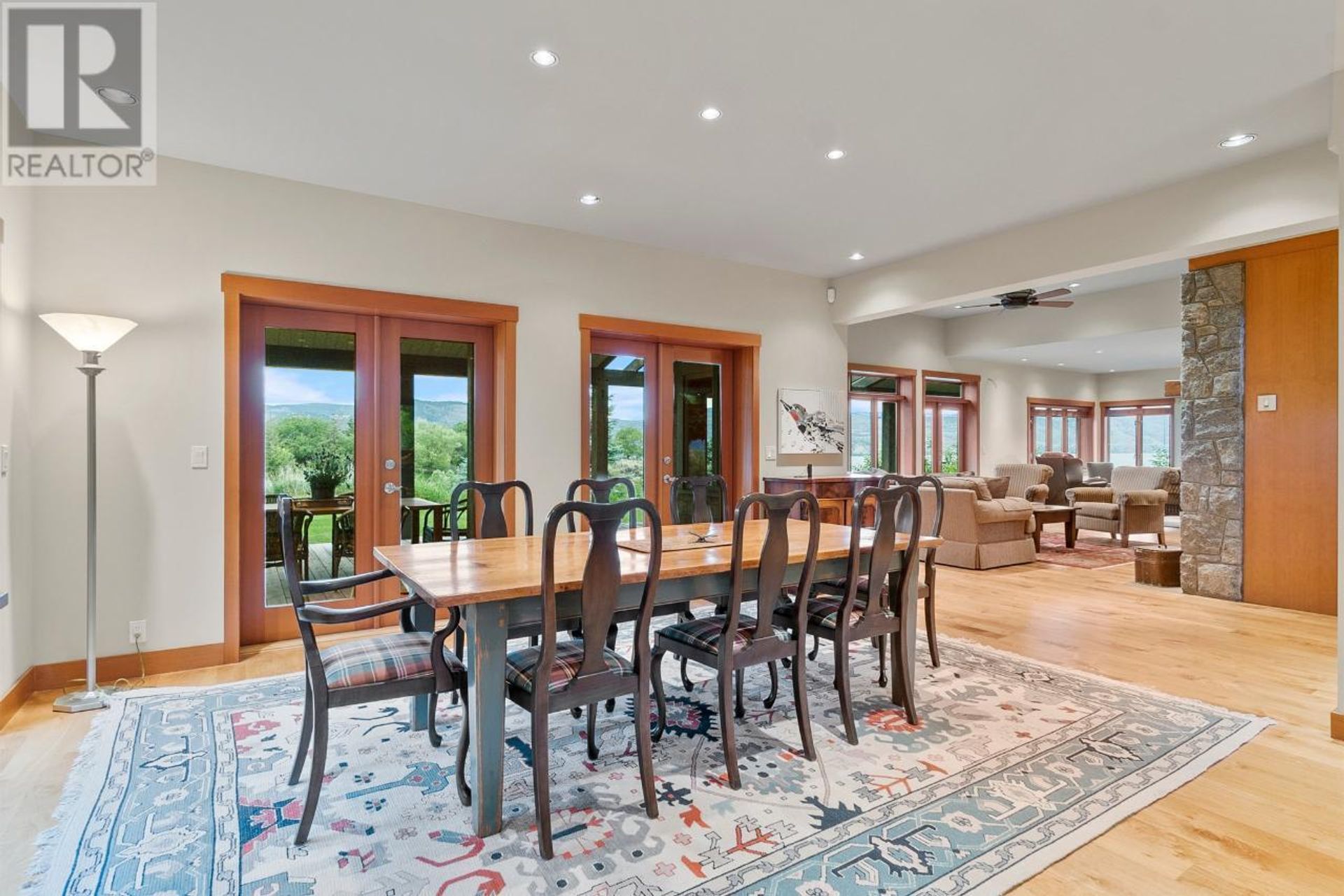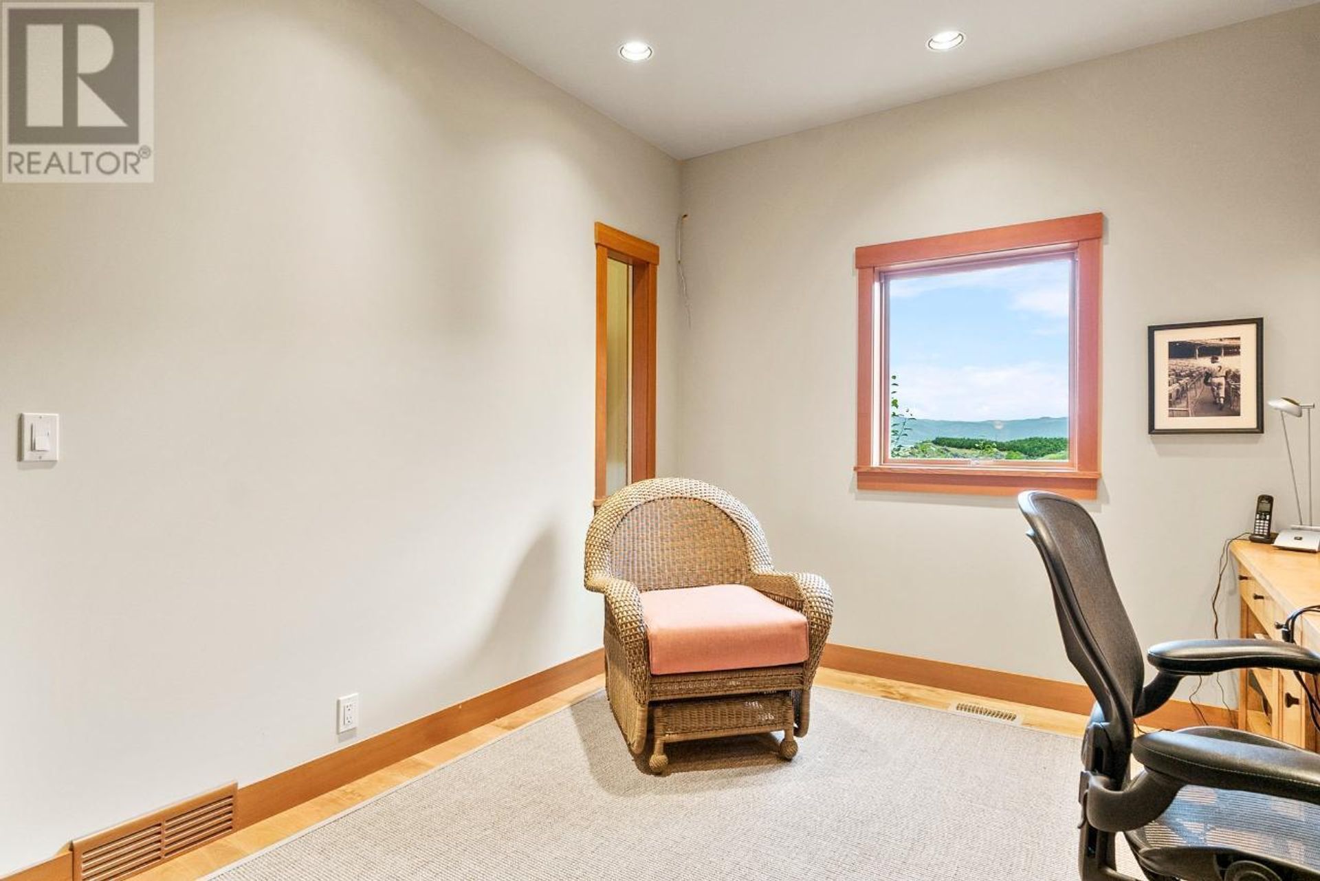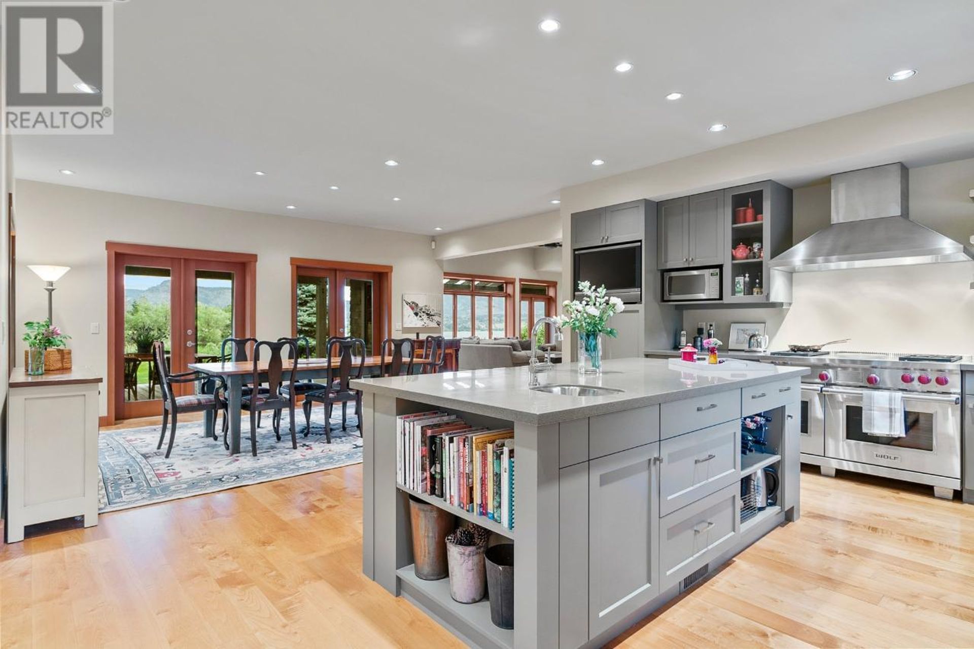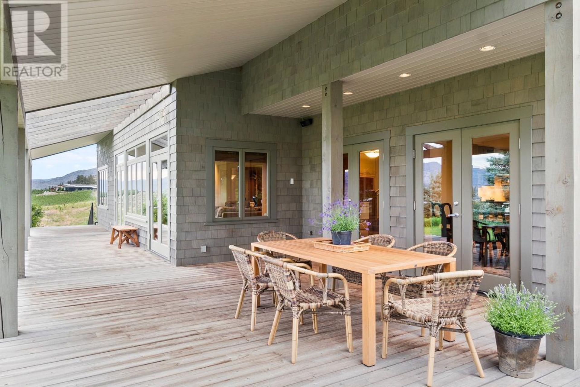 Experience the epitome of elegance & serenity in this Naramata chateaux, a breathtaking 6000+ square foot home nestled in the heart of the scenic Naramata Bench. This luxurious estate boasts captivating panoramic views of both Naramata vineyards & the shimmering waters of Okanagan Lake. Set on 2+ acres of meticulously landscaped grounds w/ fruit trees, this extraordinary property offers an idyllic escape for those seeking the perfect blend of sophistication and natural beauty. Inside is a gourmet kitchen w/ gas double Wolf oven & cooktop, Subzero refrigerator and all matching the custom maple cabinetry w/ granite countertops. Past the elegant living space and stone fireplace is a media space adjacent to his & her offices easily converted into a main level master bedroom. A wrap around covered veranda showcases the sunset views. Upstairs is the master suite w/ private media or workout room. A detached double garage w/ carriage house rounds out the package. Measurements from plans. (id:14735)