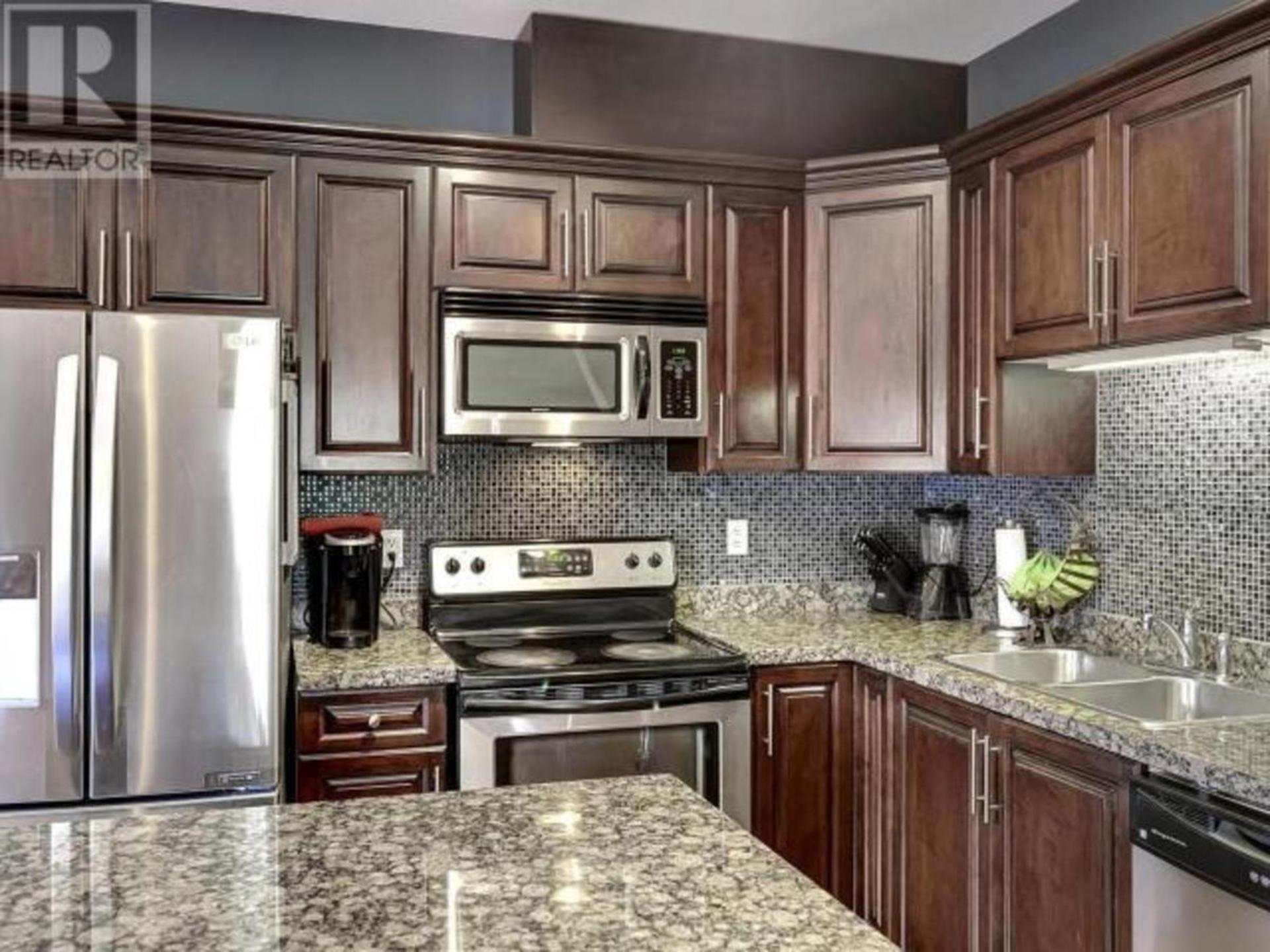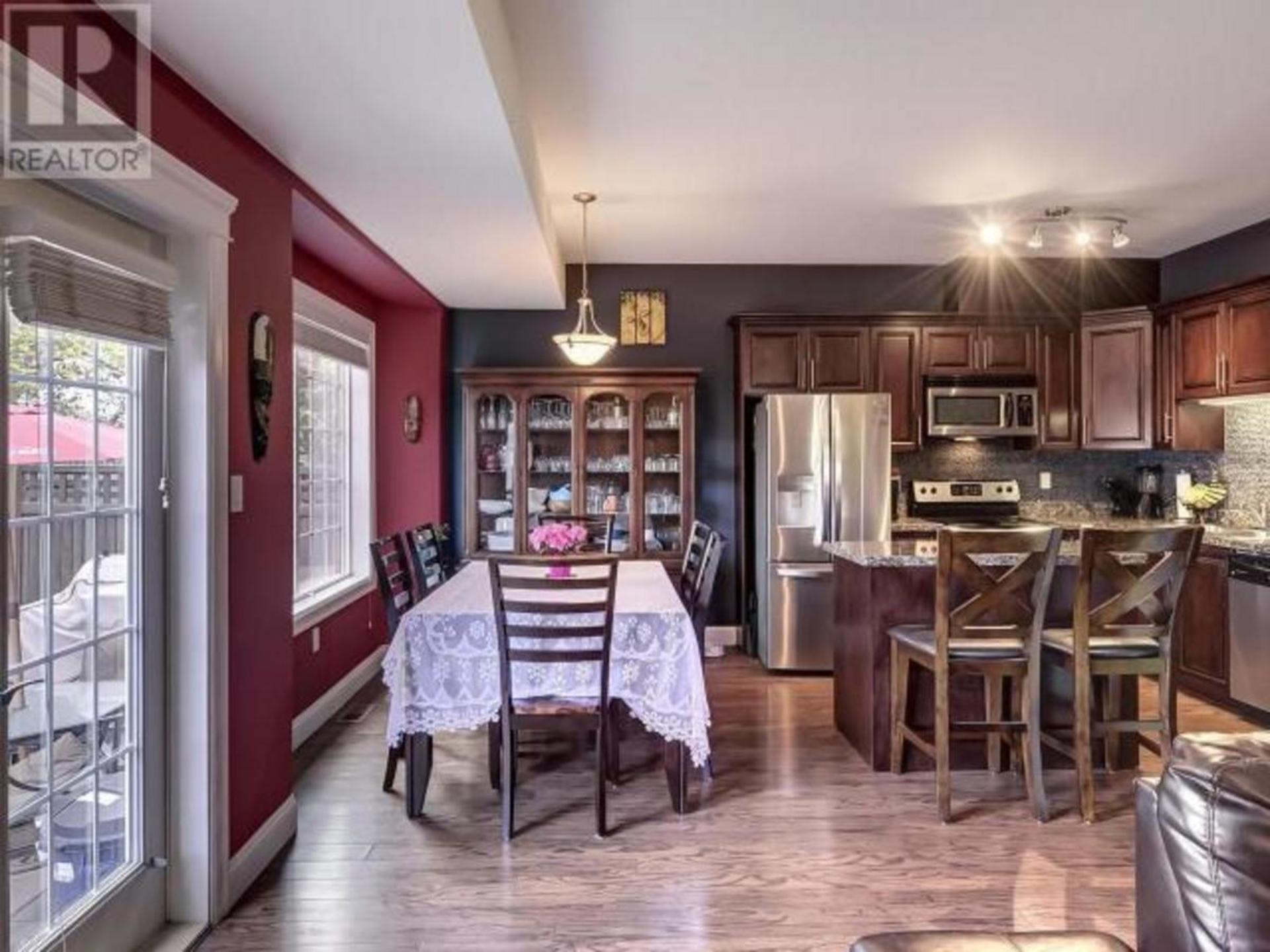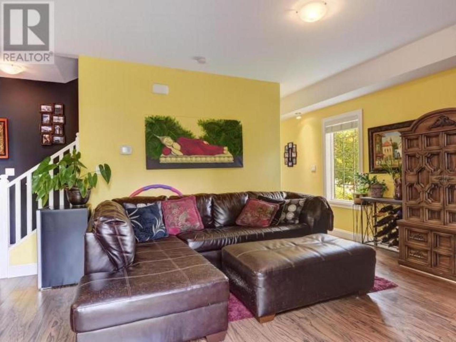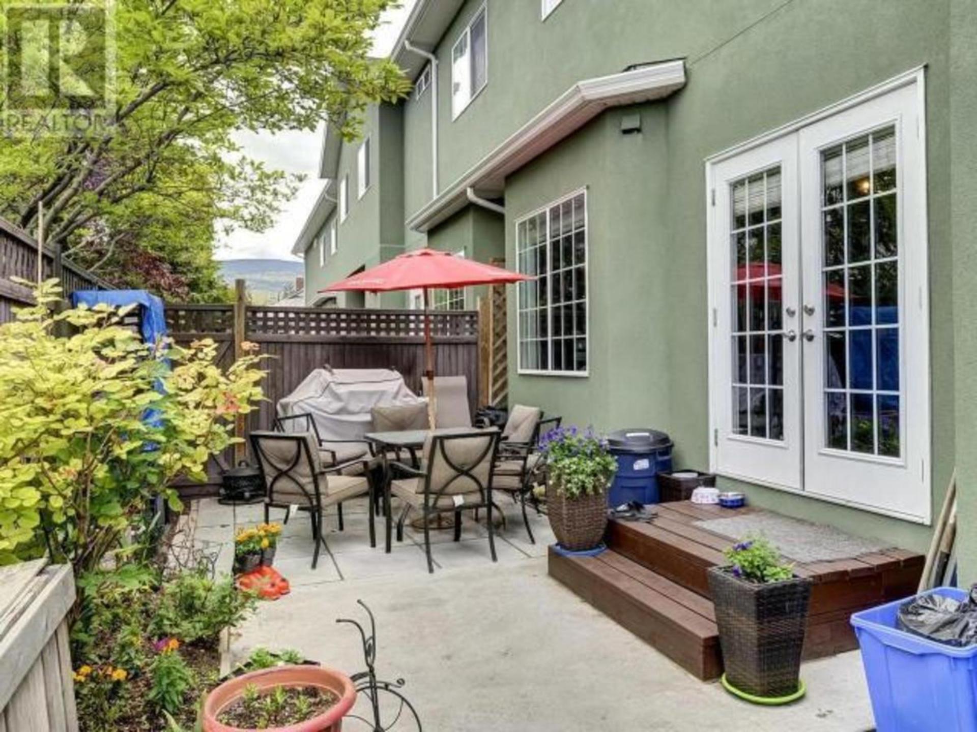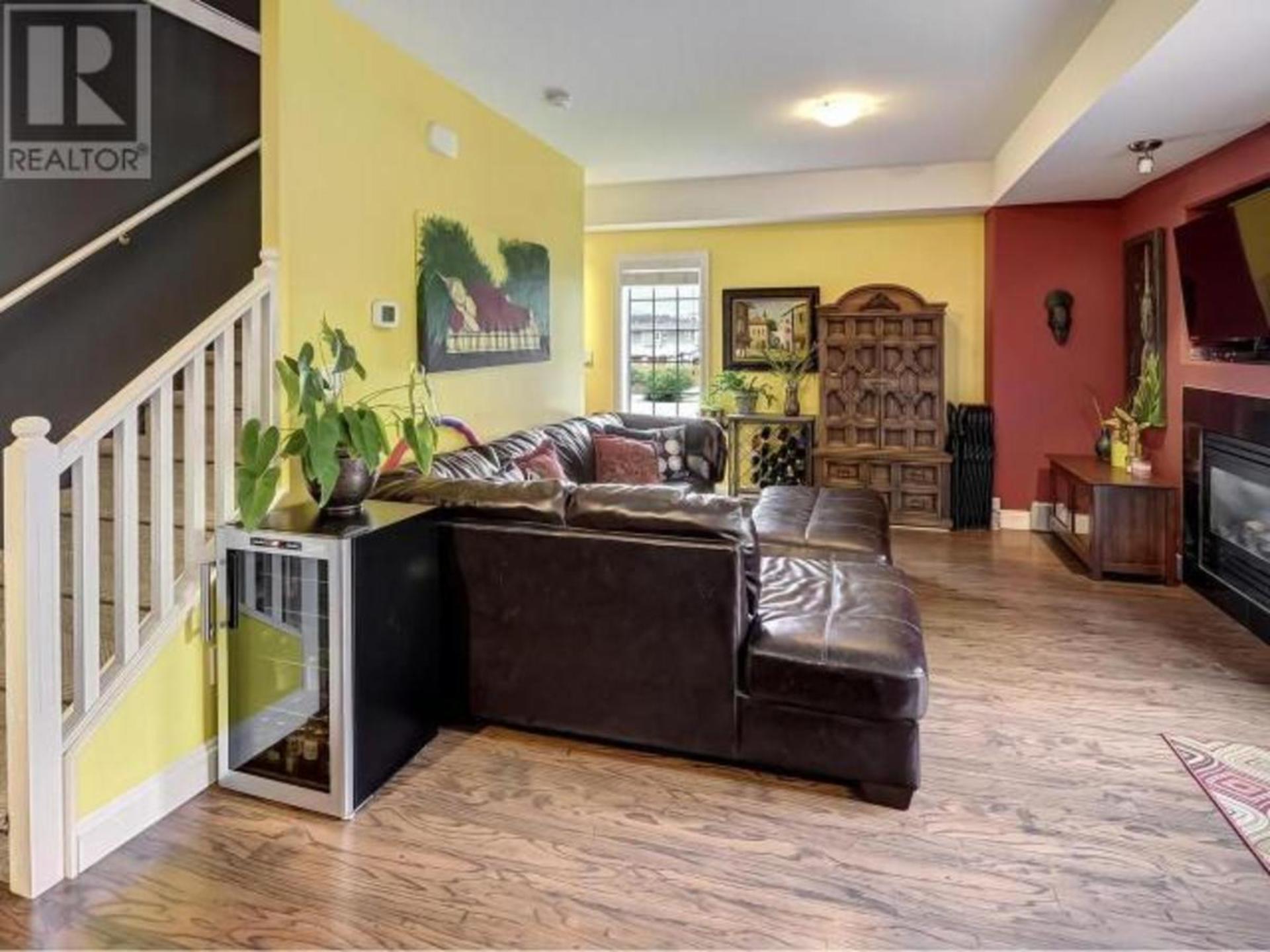 This large family townhome is centrally located for pedestrian ease with many nearby amenitites. The main floor offers an open concept kitchen, living and dining area with a gas fireplace and a small fenced patio through patio foors off the dining area. Upstairs are 3 more bedrooms including a large master bedroom with ensuite and south facing deck access. Another larger bathroom and den with deck access round out the top floor. In the basement is a large recreation room for kids play with additional storage areas. Central air-conditioning and a double garage with overheight ceiling complete the interior of this family oriented space. Outside is room for more parking and this home has the advantage of being the end unit with an additional grass area to the west. Steps to major shopping, schools, bike paths and services make this a nice option for those that want to forego their vehilce for regular errands. All measuremetns are approximate. Contact us for a private tour. (id:14735)