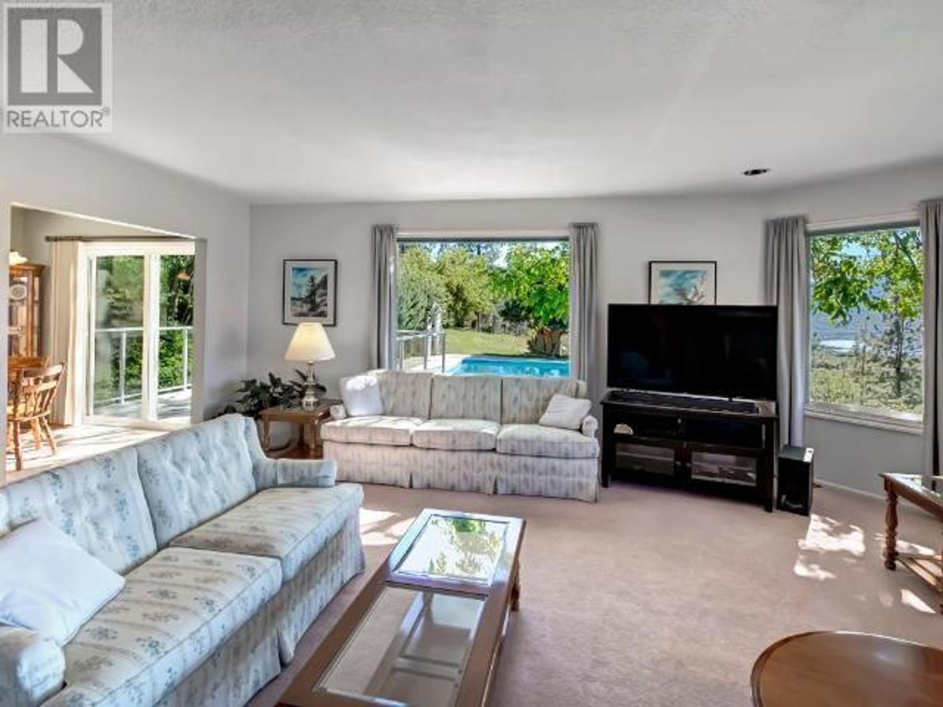 This incredible view acreage is offered for the first time! Almost 6 acres of west facing city and lake views from Kaledan to Peachland make this private estate truly remarkable. The original 4 bed home has been lovingly maintained by the original owner and includes a pool overlooking the valley, landscaped grounds as well as a detached heated mechanics workshop for boat and toy storage. The main level of the home has 2 bedrooms, a galley style kitchen & living area with bay windows capturing the valley and lake below. Patio doors open to a large deck shaded by mature trees and a solar heated pool with surrounding patio area. The basement level has 2 more bedrooms and some larger unfinished space that could easily convert to a media/recreation room or gym. Outside are close to 6 acres of gently sloping forested land for hiking, biking and roaming. A two vehicle carport may convert into an enlisted garage. Not ALR. All measurements are approximate. Showings evenings & weekends only. (id:14735)