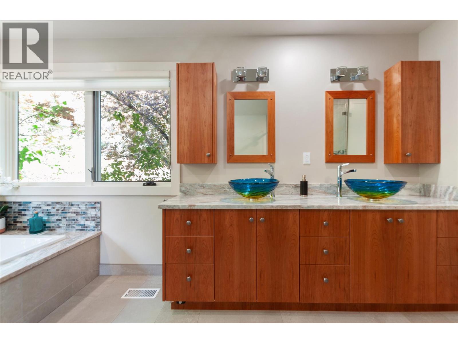 VTB / Vendor Financing is available. Click the VIDEO link below. This gorgeous 3,700+ sqft home offers 6 bedrooms & 7 bathrooms spread across 2 levels. On the main floor, you’ll find a spacious primary bedroom with a spa-like ensuite. And on the other end of the main floor, a secondary bedroom also with its own ensuite. On the lower level there are 4 additional bedrooms each with an ensuite and its own exterior entrance, giving you the opportunity to operate a very high-end bed & breakfast. The open concept living room has large sliding doors and a floor-to-ceiling brick fireplace which can be used for personal enjoyment or shared with guests. The kitchen on the main floor has recently been updated, and offers two tone quartz countertops, gorgeous modern sleek cabinetry, and a Miele stainless steel appliance package. After finishing your supper in the adjacent spacious dining room, you can choose to enjoy the gorgeous sunsets either from the exterior deck, the covered balcony, the poolside patio, or the sunset patio in the backyard. Many recent upgrades. New pool liner for a chlorine pool that could be converted to a salt pool. All the things like meditating under a tree, daydreaming next to the pool, or entertaining guests, will become your new favourite things to do. It's an excellent opportunity to take over an established business and enjoy everything this fantastic Okanagan luxury lifestyle has to offer, while living it! (id:14735)