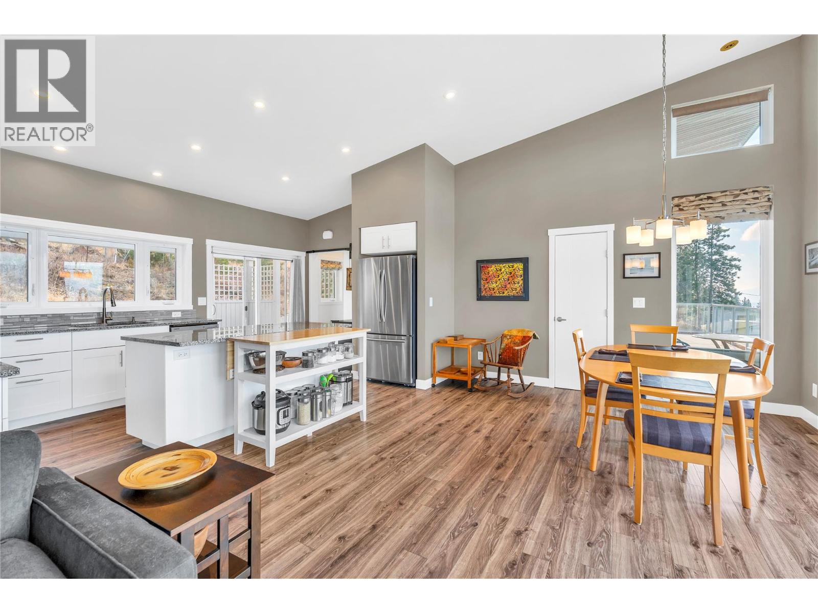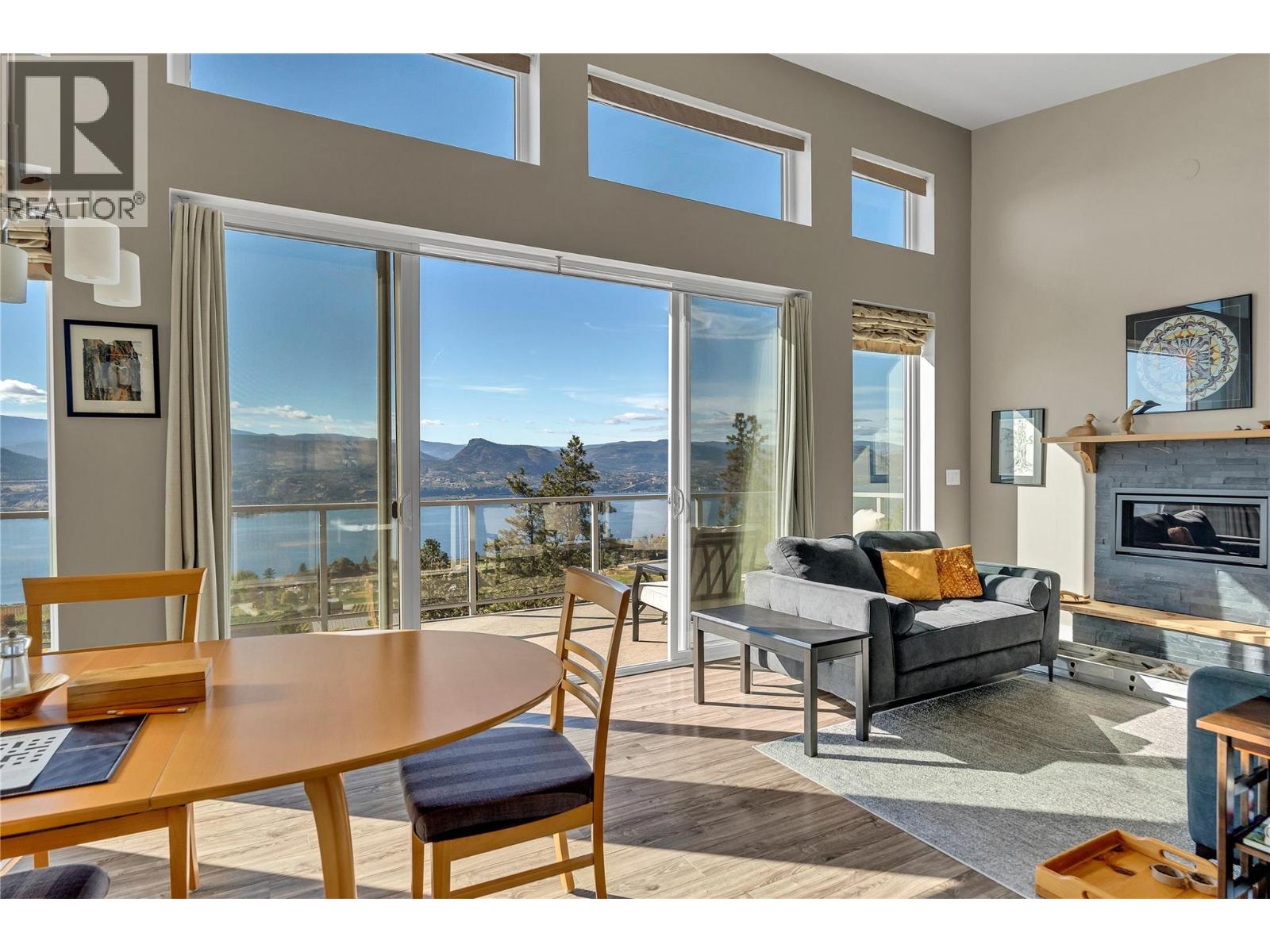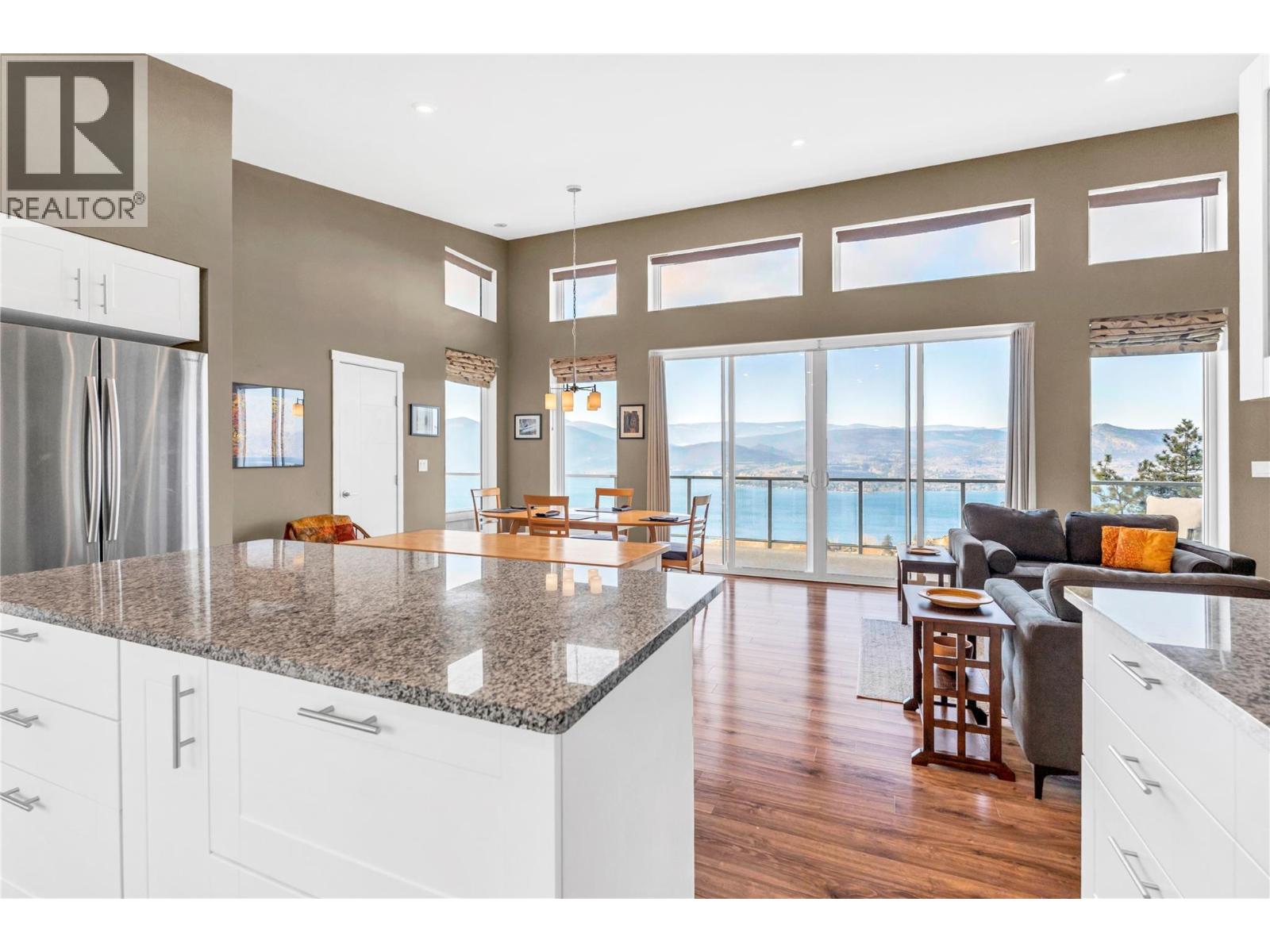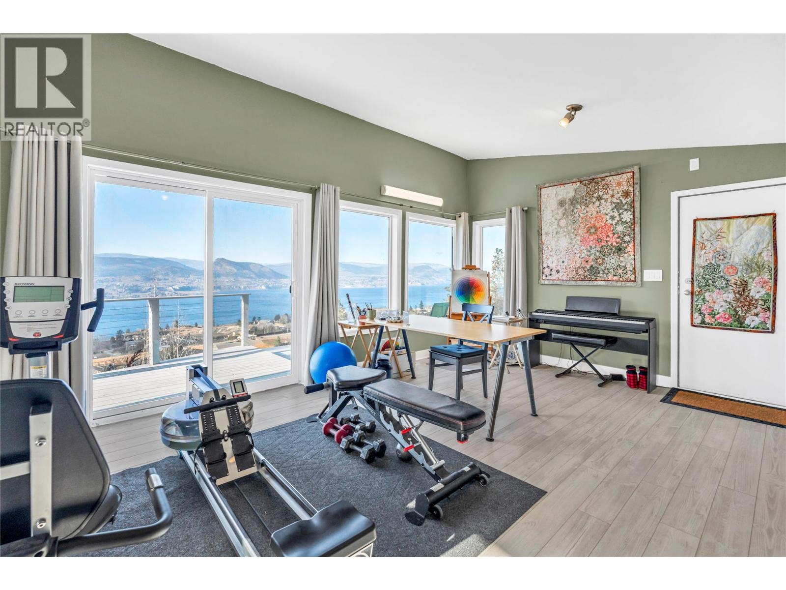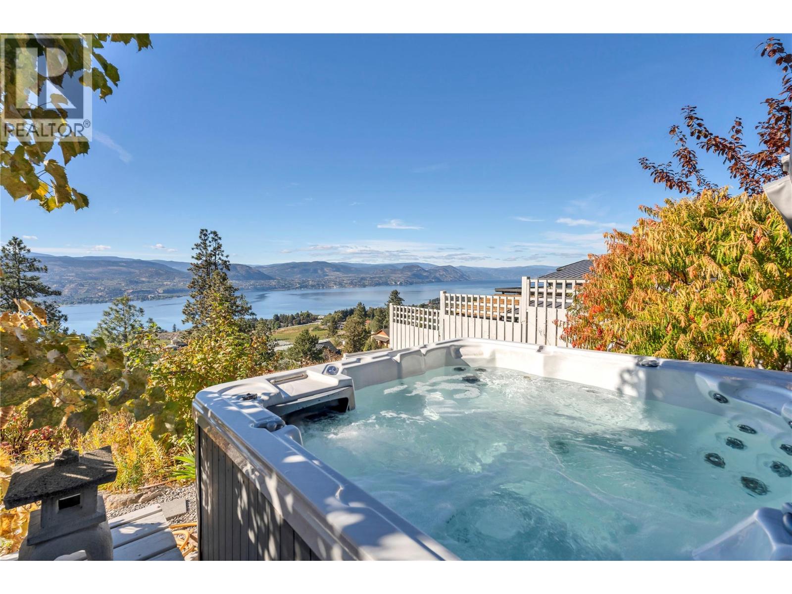 Welcome to the Singing Marmot: A rare opportunity to own a breathtaking lakeview estate on the exclusive Naramata Bench. This stunning family home captures unobstructed panoramic views of Okanagan Lake, vineyards, and city lights. Built in 2016, the home offers 5 bedrooms and 4 full bathrooms, with an airy open-concept layout featuring soaring ceilings and a seamless kitchen, dining, and living space perfect for entertaining or quiet evenings soaking in the view. The current floor plan includes a successful and established B&B, offering excellent flexibility for income generation or multi-generational living. Set on 1.527 acres, the property is a private oasis with multiple expansive decks designed to showcase the million-dollar views. A hobby vineyard with three red grape varietals and several mature fruit trees add charm and lifestyle appeal that truly sets this property apart. Additional highlights include a heated double garage, ample outdoor parking, and a separate 440 sq ft heated and insulated music/fitness studio complete with high-speed internet ideal for creatives, remote work, or a private retreat. Backing onto the KVR Rail Trail, this property offers direct access to world-class hiking and biking, making it a true lifestyle home. Properties like this combining views, acreage, privacy, and trail access are exceptionally rare. (id:14735)