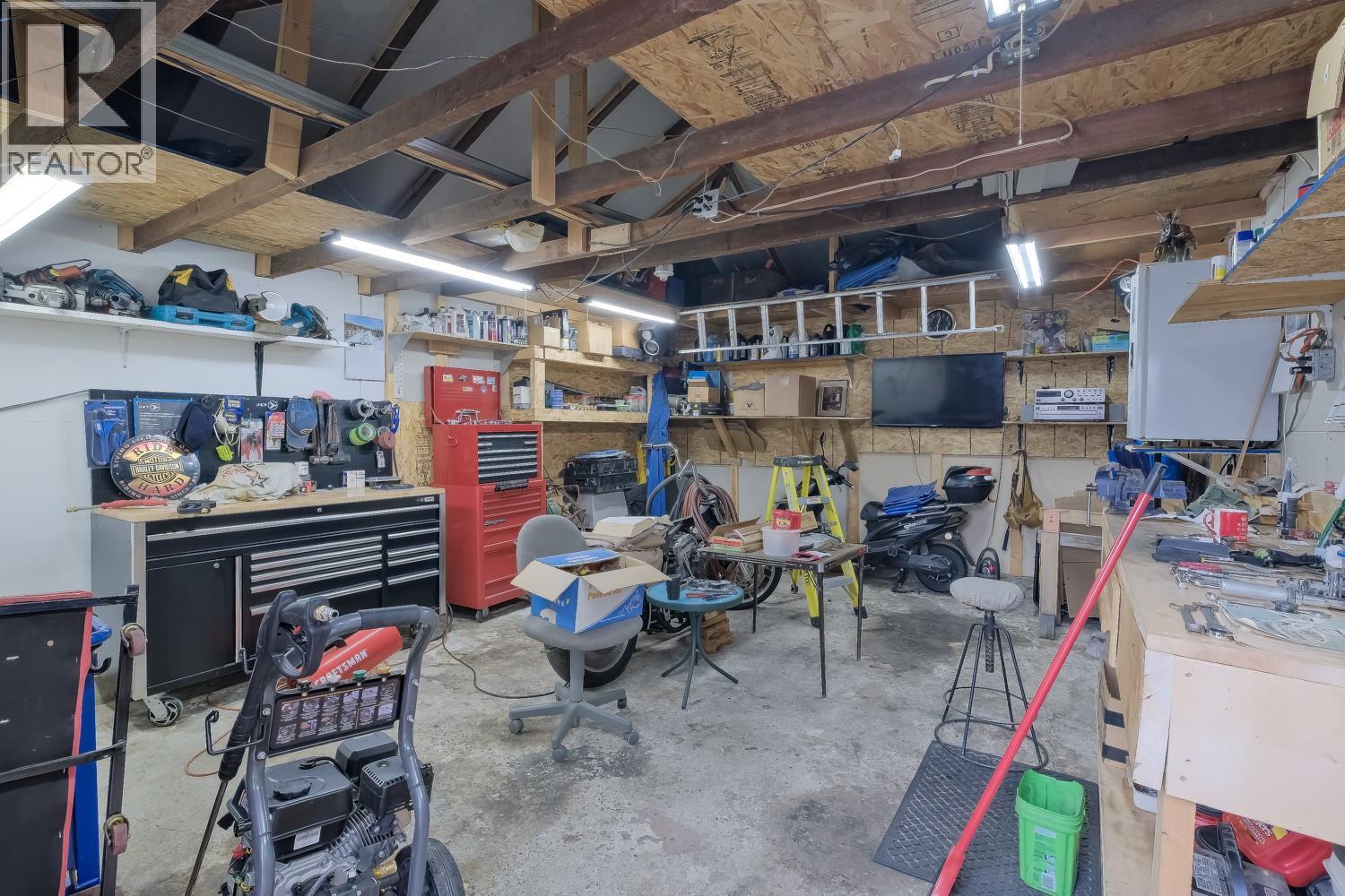 Welcome to this four-bedroom, one-bathroom home on a flat lot with alley access. The main floor offers a spacious kitchen and dining area with access to a private back deck, a comfortable living room with a wood-burning fireplace, and the primary bedroom on the main. Downstairs you’ll find a rec room and two additional bedrooms. Plenty of parking with room for an RV or boat, plus an outdoor workshop. A solid investment property with tenants who would like to stay. (id:14735)